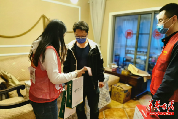 华声在线4月15日讯(通讯员 王敏琳 记者 李典蔓)近日,湖南省直机关文明办组织开展“微光大义·致敬白衣天使”志愿者活动。中邮保险湖南分公司第一时间积极响应,4月14日,该公司全体党员组成三支志愿者分队,前往多位支援湖北国家医疗队的医护人员家中慰问,感谢信、生活物资、爱心礼包,表达着对医护人员及其家人的感谢与崇高敬意。
