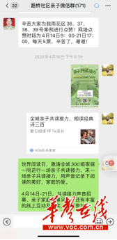 华声在线4月24日讯(通讯员 刘思诗)4月23日是第25个世界阅读日。每年的这一天,都有许多以书为名的纪念活动,而今年的读书日,因疫情原因无法举办人山人海的活动,但阅读对于长沙市路桥社区的家庭来说,并未停止。