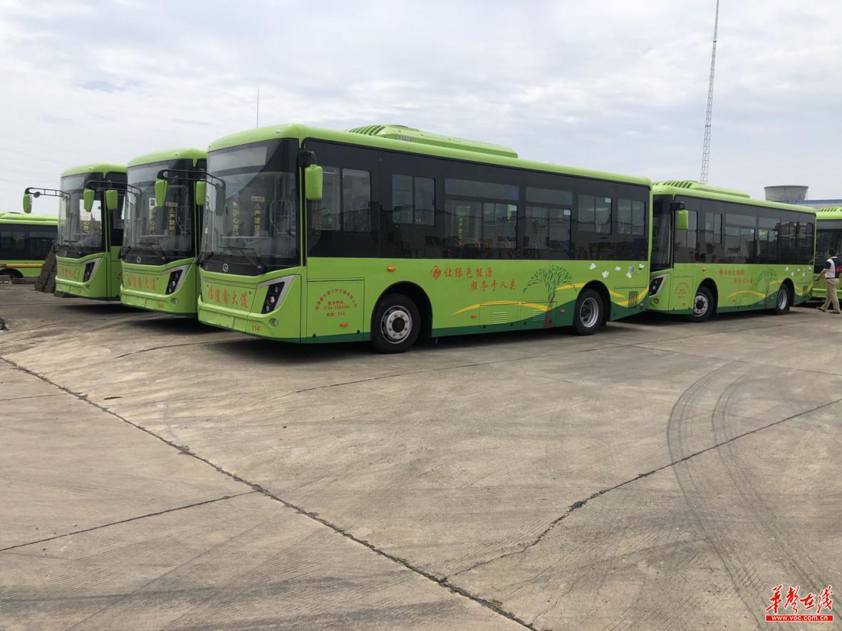 经交通局协调免费停靠在福泰物流公司的新能源客车整装待发