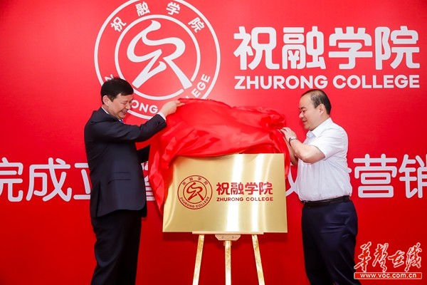 (衡阳市委副书记、市长朱健,祝融学院院长、上海交通大学中国企业发展研究院院长余明阳共同为祝融学院揭牌。)