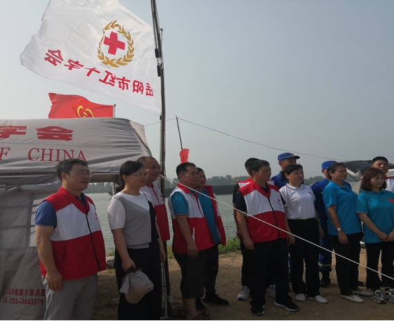 省红十字会副监事长邓四清看望守堤巡查的红十字志愿者
