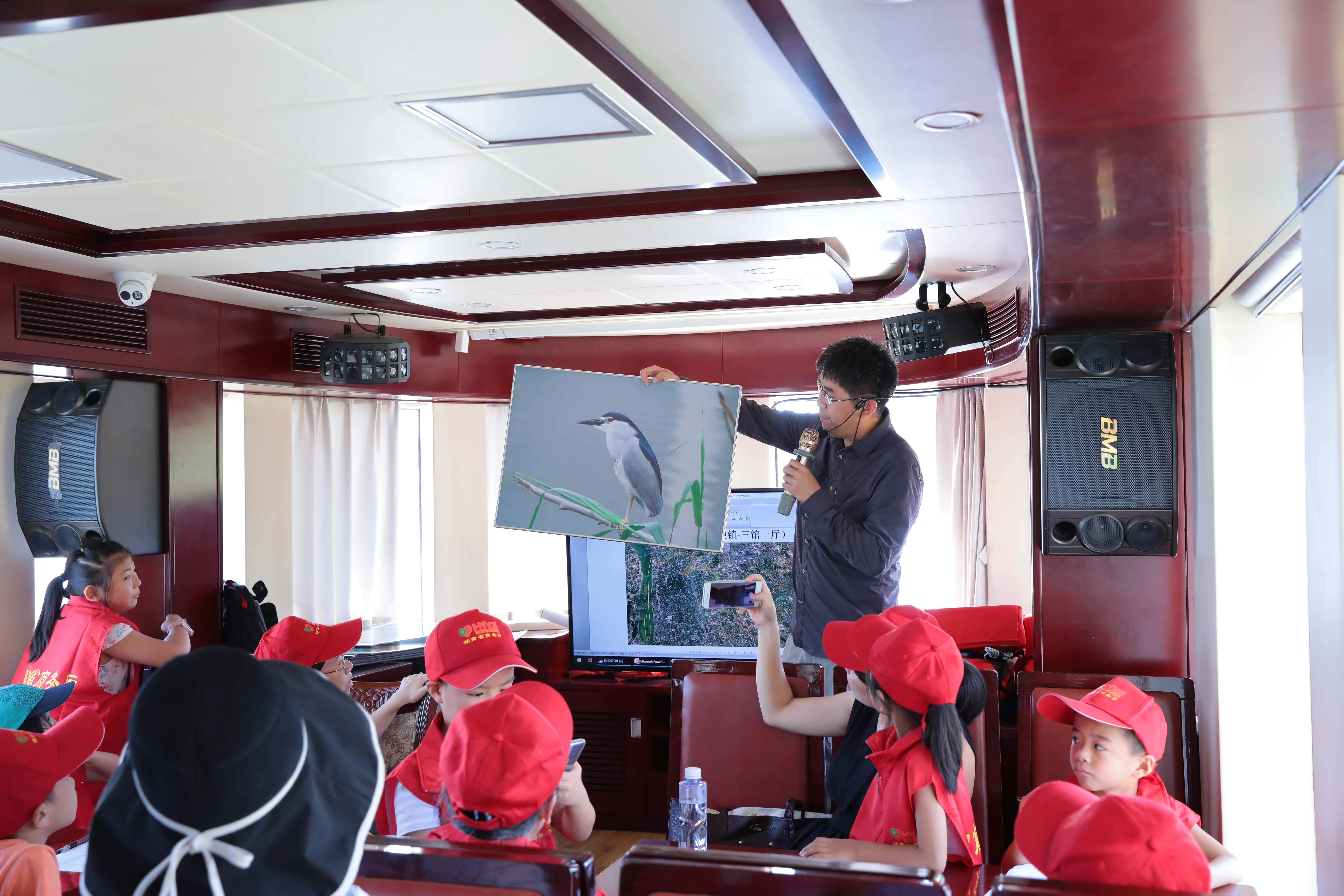 随后,志愿者们乘船从“三馆一厅”码头出发,在湖南农业大学生物科学技术学院教师周晓明带领下,了解湘江特别是浏阳河的生态环境、水利设施。小志愿者们用望远镜观察沿途的植被和鸟类,记录沿河的钓鱼人数,进入驾驶舱向船长请教河流的相关知识。经过实地观察和老师的授课讲解,大家加深了对母亲河的了解,认识到保护母亲河的重要性和紧迫性。小志愿者们表示,今后要带动周围的人共同珍爱母亲河,保护母亲河。