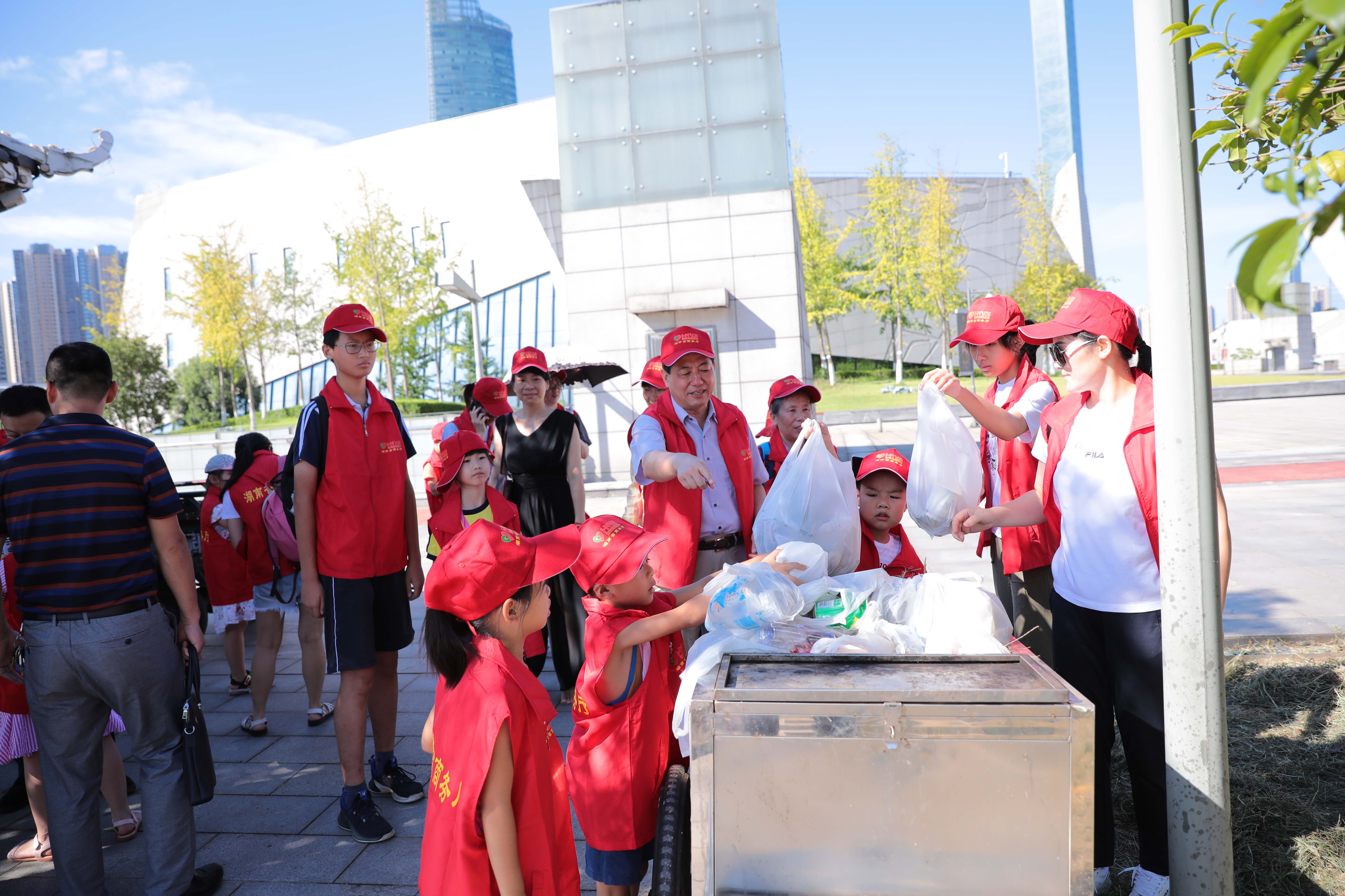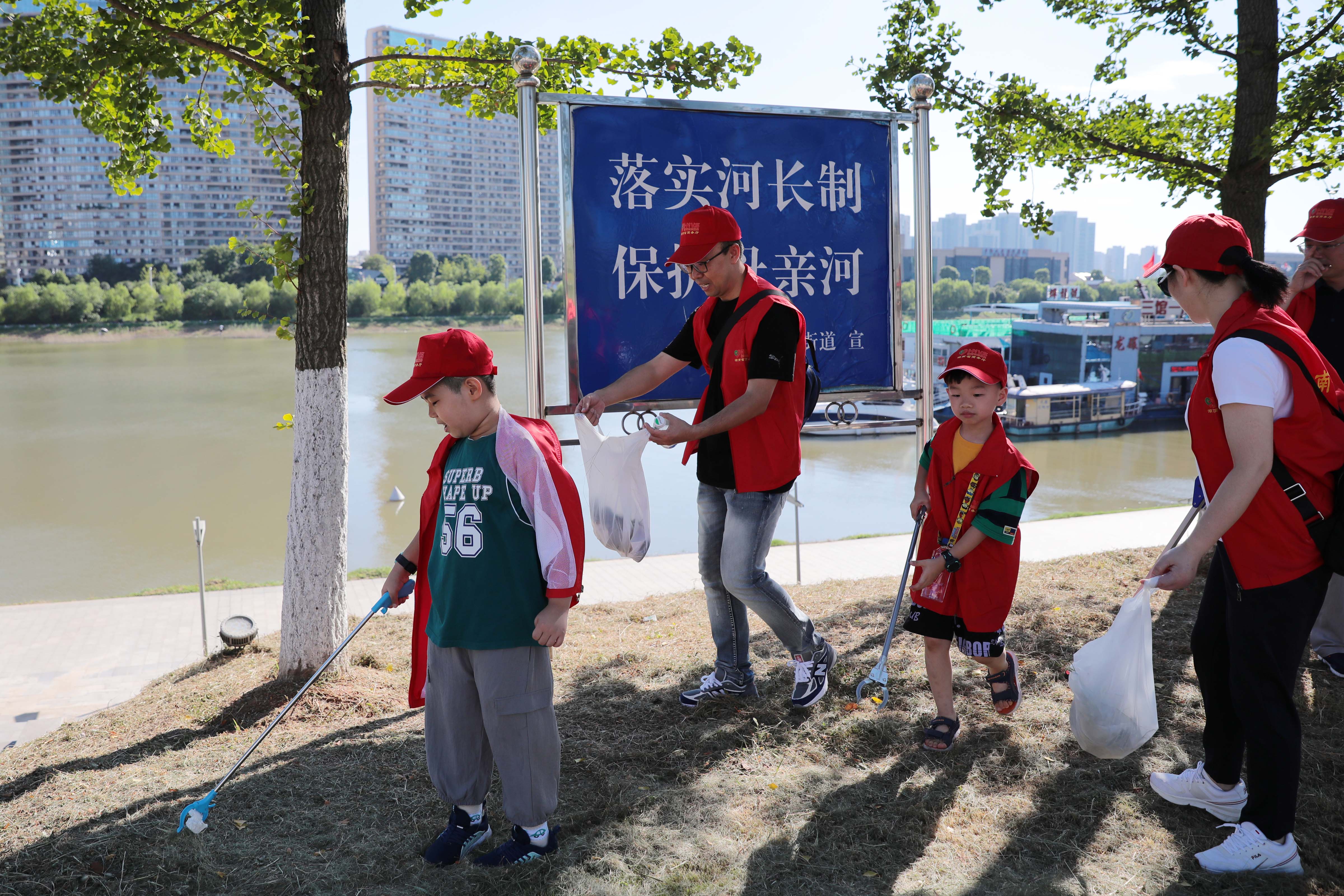 炎炎烈日下,志愿者们来到湘江河岸捡拾垃圾。在志愿者的带领下,小志愿者们一手拿垃圾钳,一手拿可降解垃圾袋,睁大眼睛“扫描”岸堤,一旦发现塑料瓶、烟头、纸屑等垃圾,立即捡到垃圾袋中。虽然大家热得汗流浃背,但干劲很足。不知不觉中,码头附近的河岸变得干干净净,志愿者们拿着一袋袋的垃圾“满载而归”。能用实际行动减少污染源,保护母亲河,大家都感到骄傲和自豪。