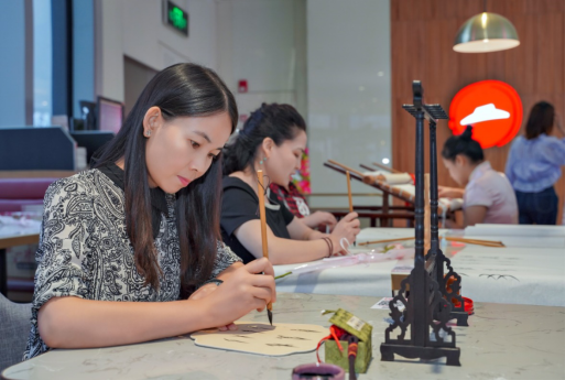 爱心义卖环节结束后,大家随即现场来宾来到非遗项目体验区,在湖南省湘绣研究院的老师指导下,你一针我一线在一件美轮美奂的湘绣上,共同绣出了必胜客的logo。在所有人的见证下,江永女书传人胡欣也现场挥墨,用女书写下“必胜客三十而立”,作为贺礼庆祝必胜客30周年生日快乐。