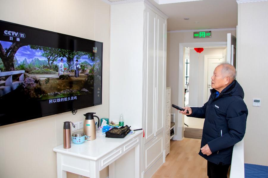 周爹爹今年88岁,有一个儿子,在广东工作,每年回来两三次,他不想给儿子添麻烦,所以主动提出要住养老院。周爹爹说,此前他在其他养老院住了8年,2020年11月入住协和颐养院。在这里,他体会到了不一样的养老生活。每天早上护理员都会搞卫生、接热水,每个月都会将被子换洗一次,烘干后再送过来,“就像住在星级宾馆一样。”“这里的服务很好,工作人员一见我们就微笑,有一种受尊敬的感觉”。